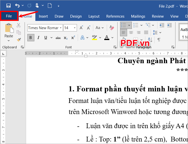 Bước 5: Sau đó bạn thực hiện lưu file dạng PDF bằng cách chọn File.