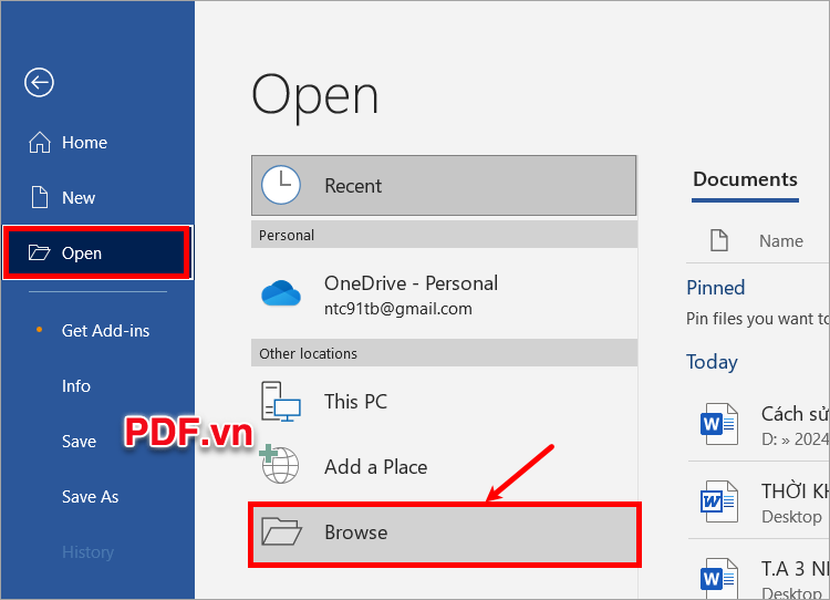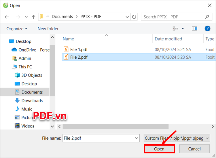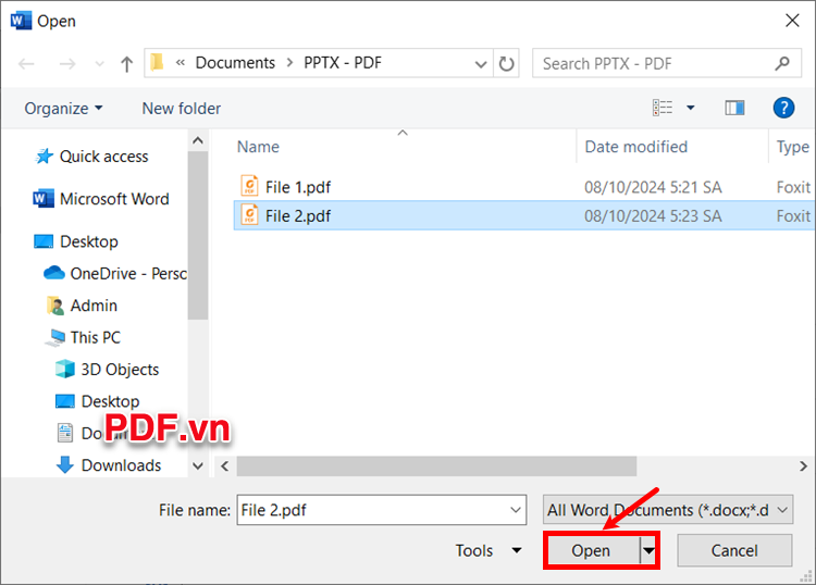 Bước 2: Xuất hiện cửa sổ Open, bạn chọn đến file PDF cần sửa số và chọn Open.