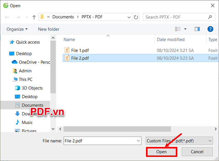 Bước 3: Xuất hiện cửa sổ Open bạn chọn đến file PDF cần sửa số và chọn Open.