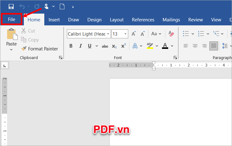 Bước 1: Mở Microsoft Word trên máy tính của bạn, tiếp theo chọn File.