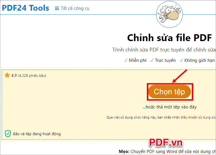 Bước 1: Đầu tiên bạn cần truy cập PDF24 Tools, trên giao diện bạn chọn Chọn tệp.