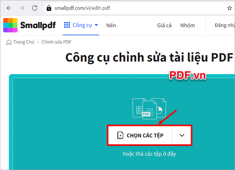 Bước 1: Truy cập SmallPDF, trên giao diện bạn chọn Chọn các tệp.